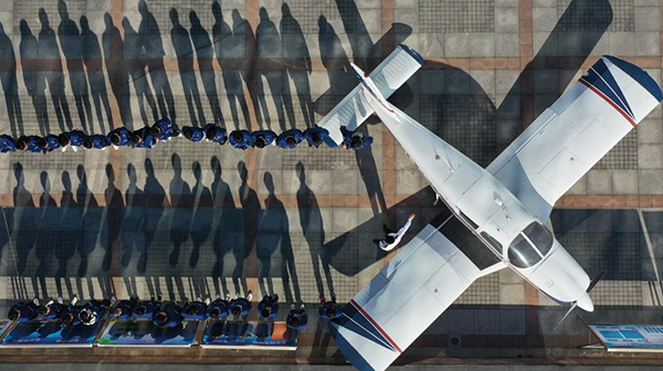 12月17日,河北省唐山市丰润区综合职业技术教育中心飞机维修专业教师在给学生上课(无人机照片)。新华社记者 牟宇 摄