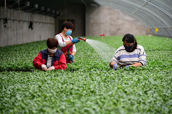 12月11日,河北省南和县贾宋镇一家现代农业示范园区工人在智慧温室内工作。新华社记者 朱旭东 摄